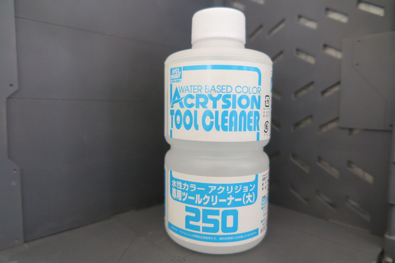 「アクリジョン用ツールクリーナー」も発売されているので、塗料カップの清掃や、うがいをして綺麗にします。
