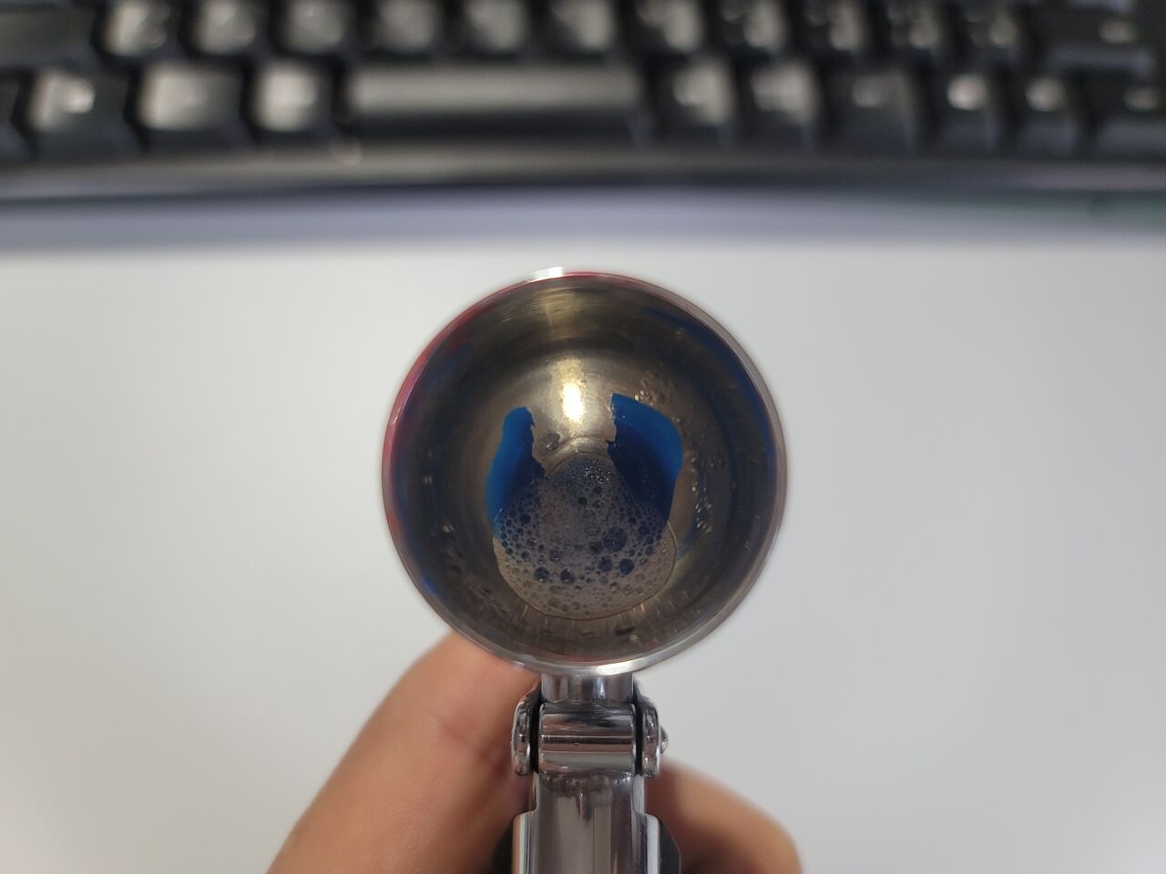 見づらいのですが、薄め液と混ぜあわせると塗料の塊ができることがあります。