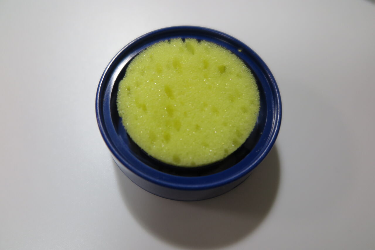 塗装を続けていると、ニードルに塗料が付着してくるので、軽くスポンジに押し当てるようにすると塗料を落とせます。